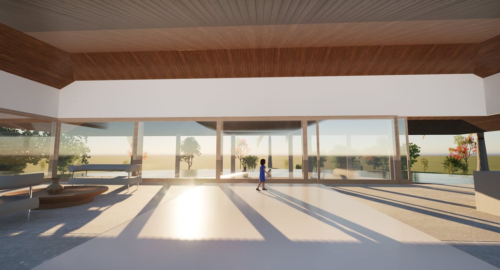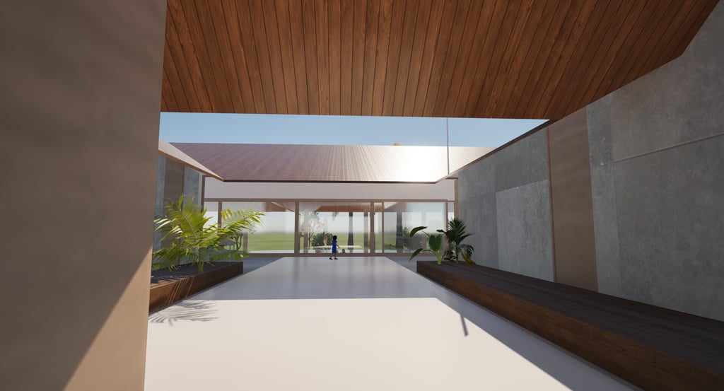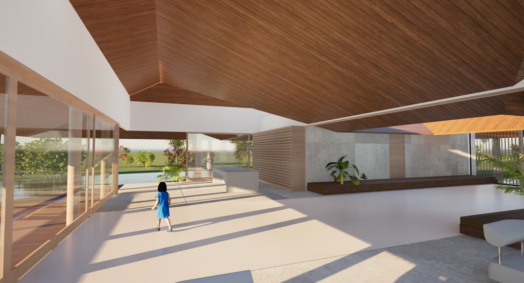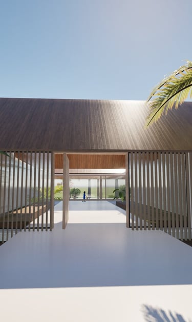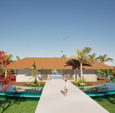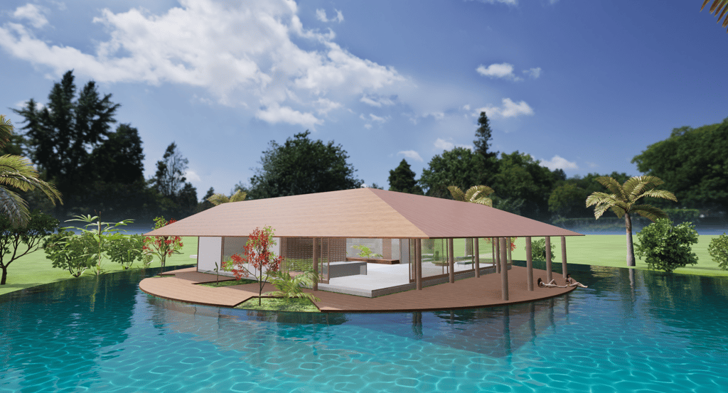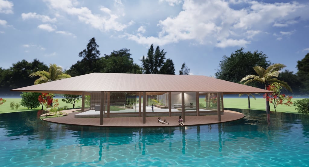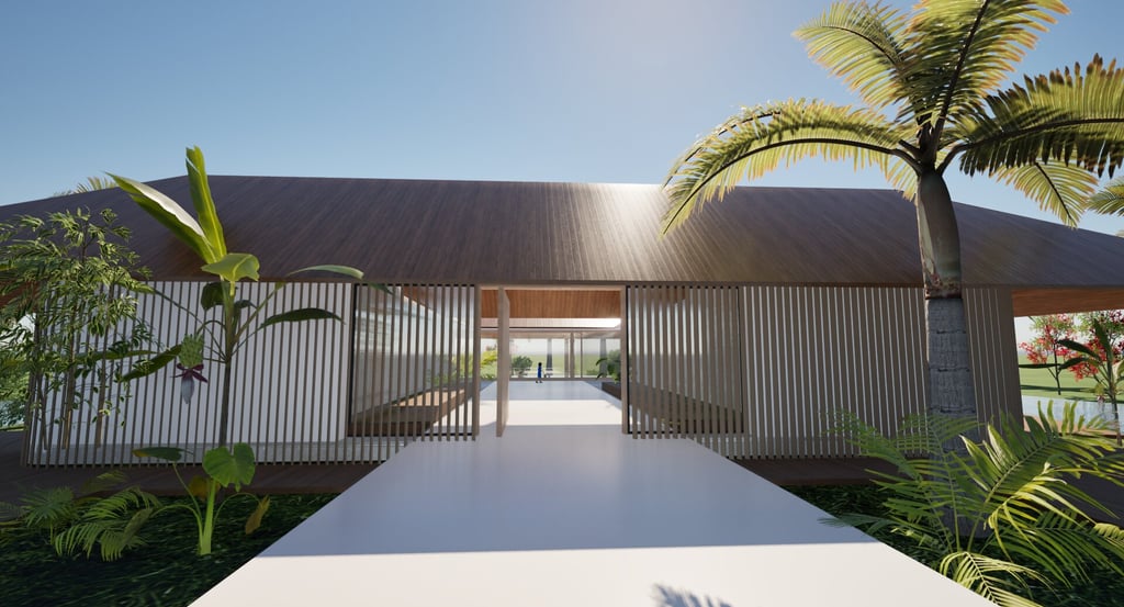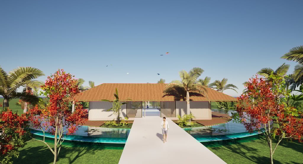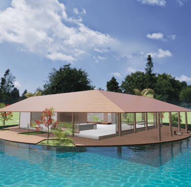 Maison Motu est une résidence insulaire alliant structure mixte bois et métal, pensée pour dialoguer avec son environnement tropical. Une piscine circulaire enveloppe la maison, créant une impression de flottement et de fraîcheur continue. À l’entrée, un patio végétalisé accueille la lumière et relie subtilement intérieur et extérieur.